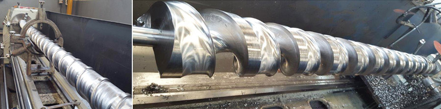 Roscas dosadoras metálicas de plastificação para injetoras, extrusoras e sopradoras de plásticos. Até 5 mts. de comprimento